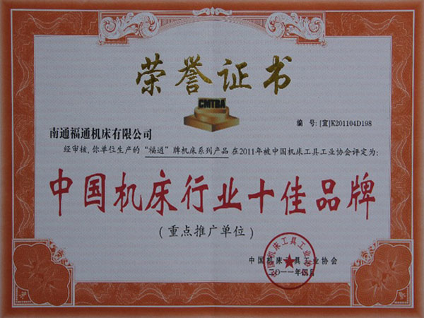 中國(guó)機(jī)床行業(yè)十佳品牌