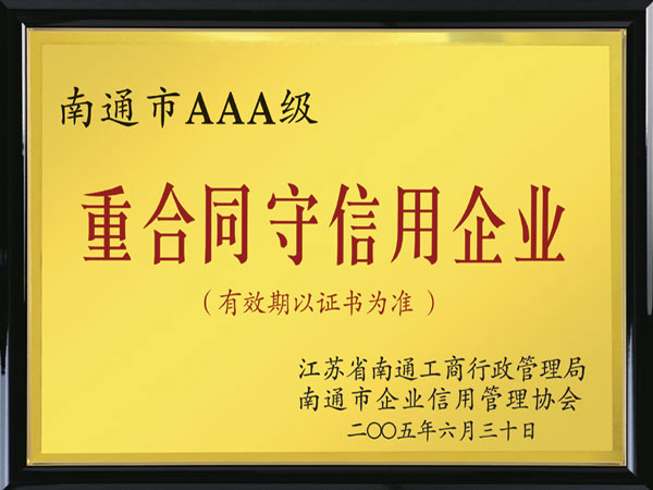 南通市AAA級(jí)重合同守信用企業(yè)(2005年)